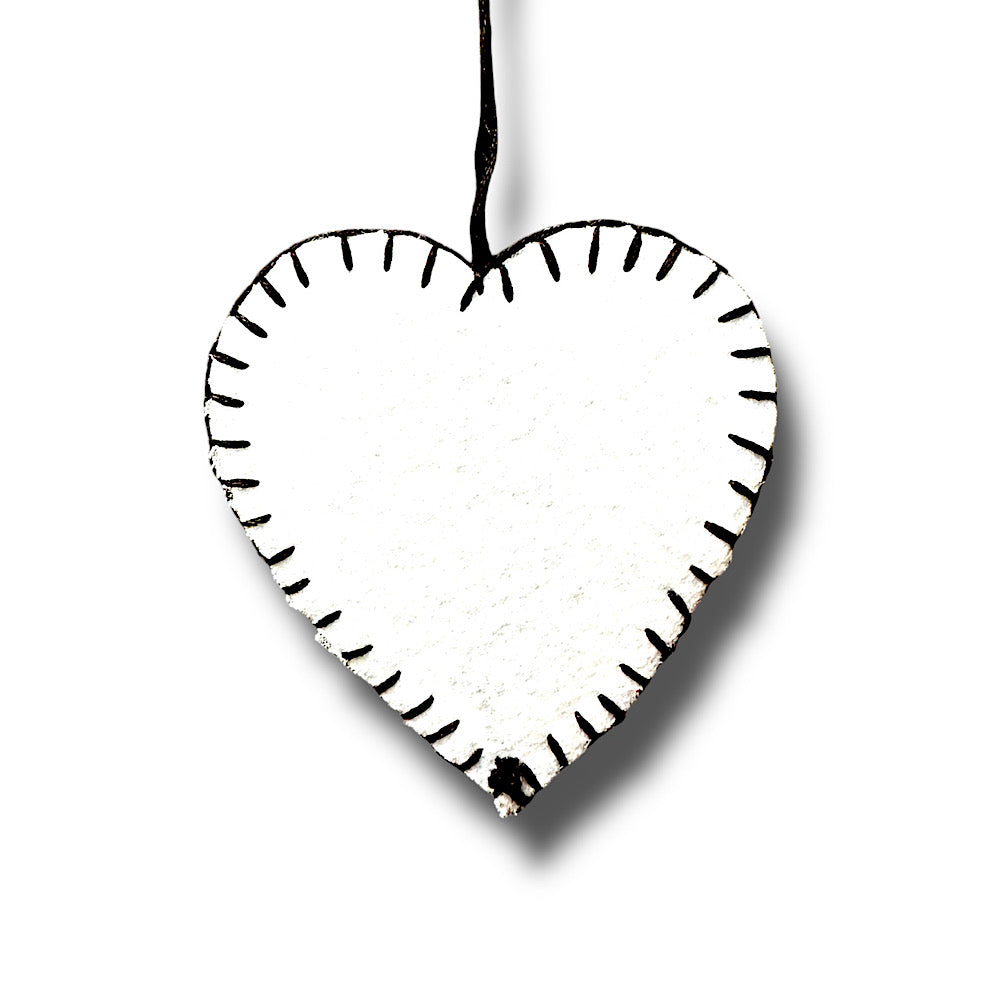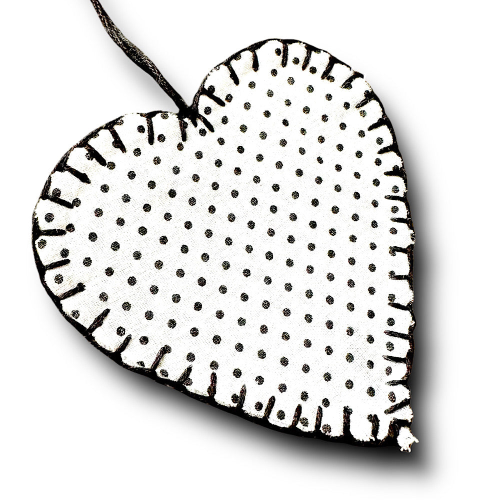 Add a touch of elegance with our hand stitched black and white polka dot hanging heart decoration.