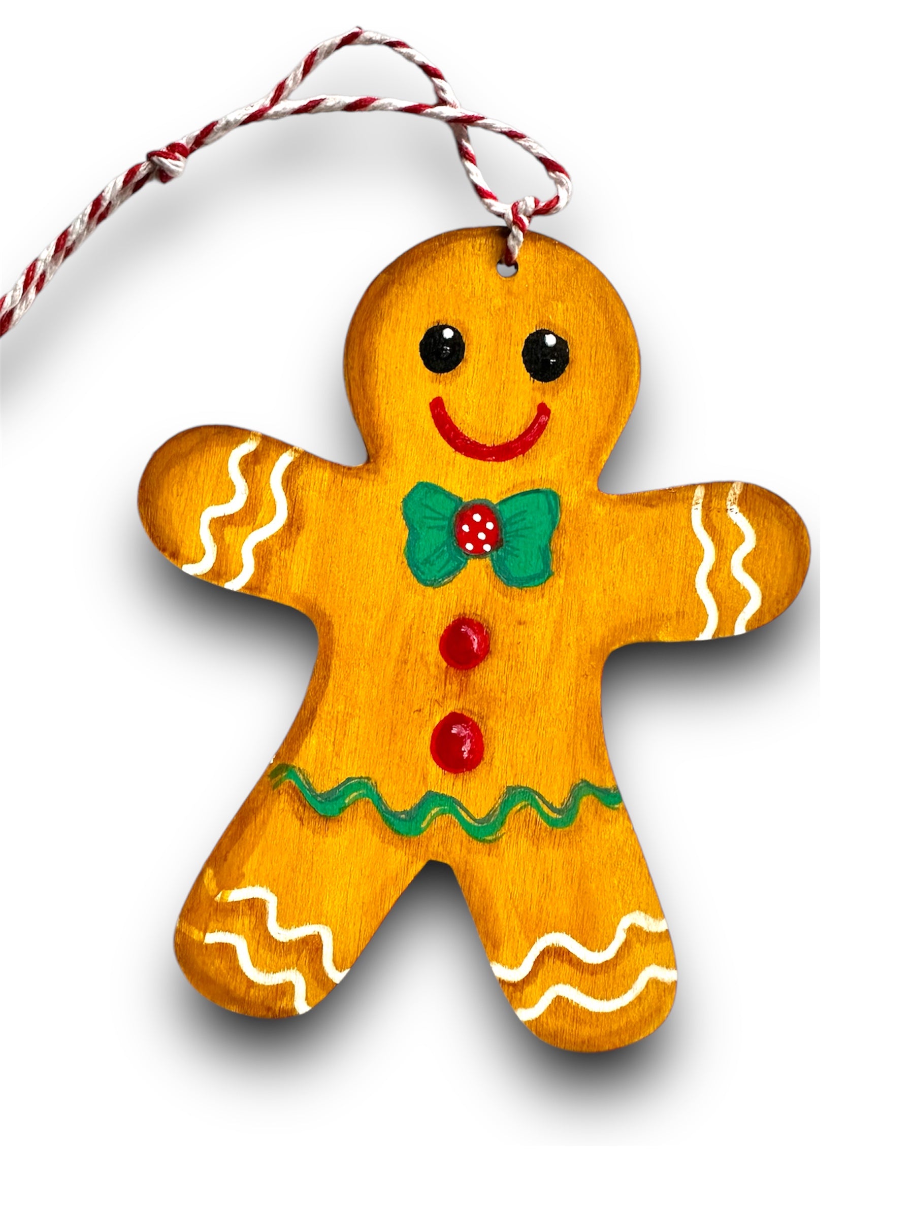 Add some sweet and festive charm to your Christmas tree with our hand-painted gingerbread man ornament.
