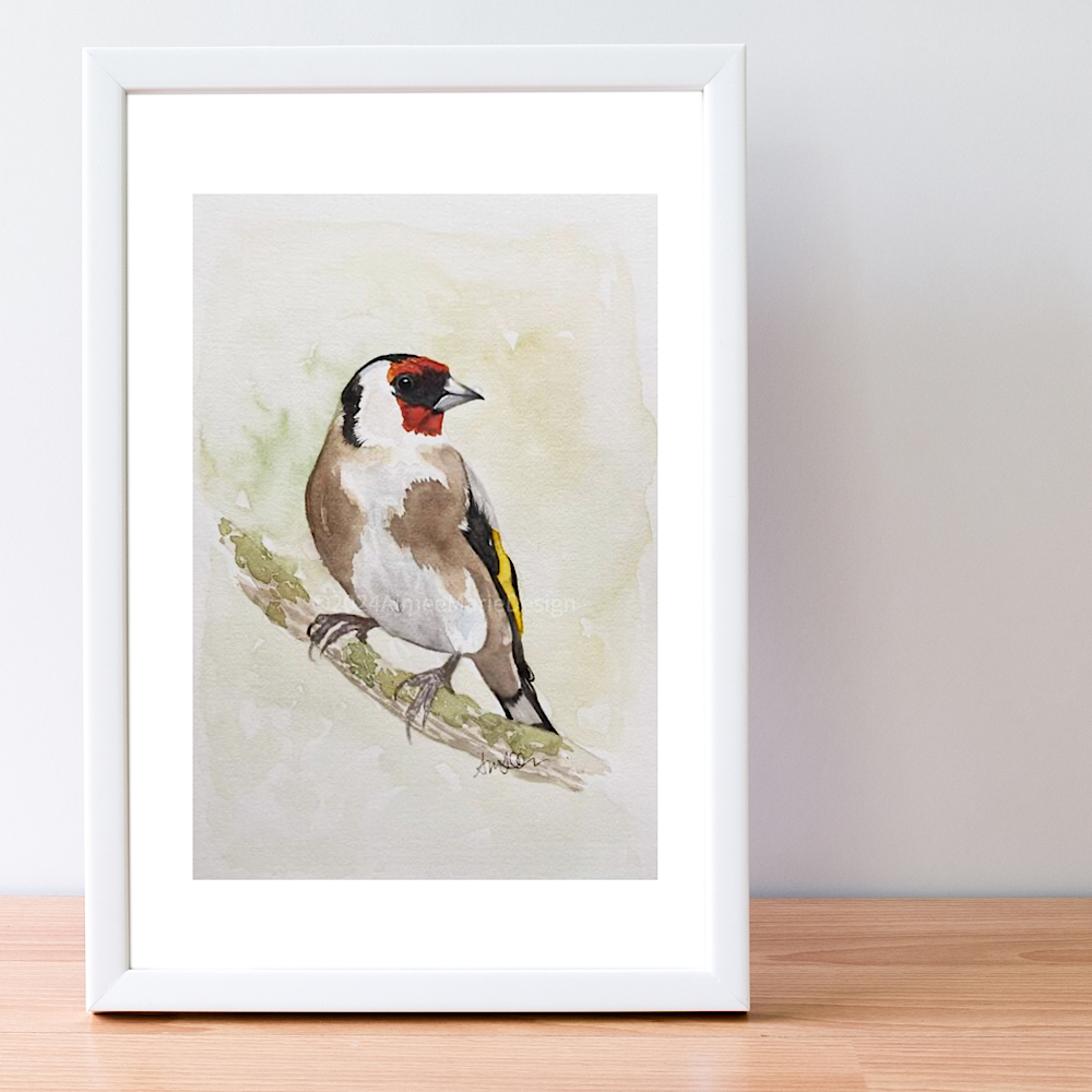 This original goldfinch watercolour painting on paper features a popular, colourful British garden bird.