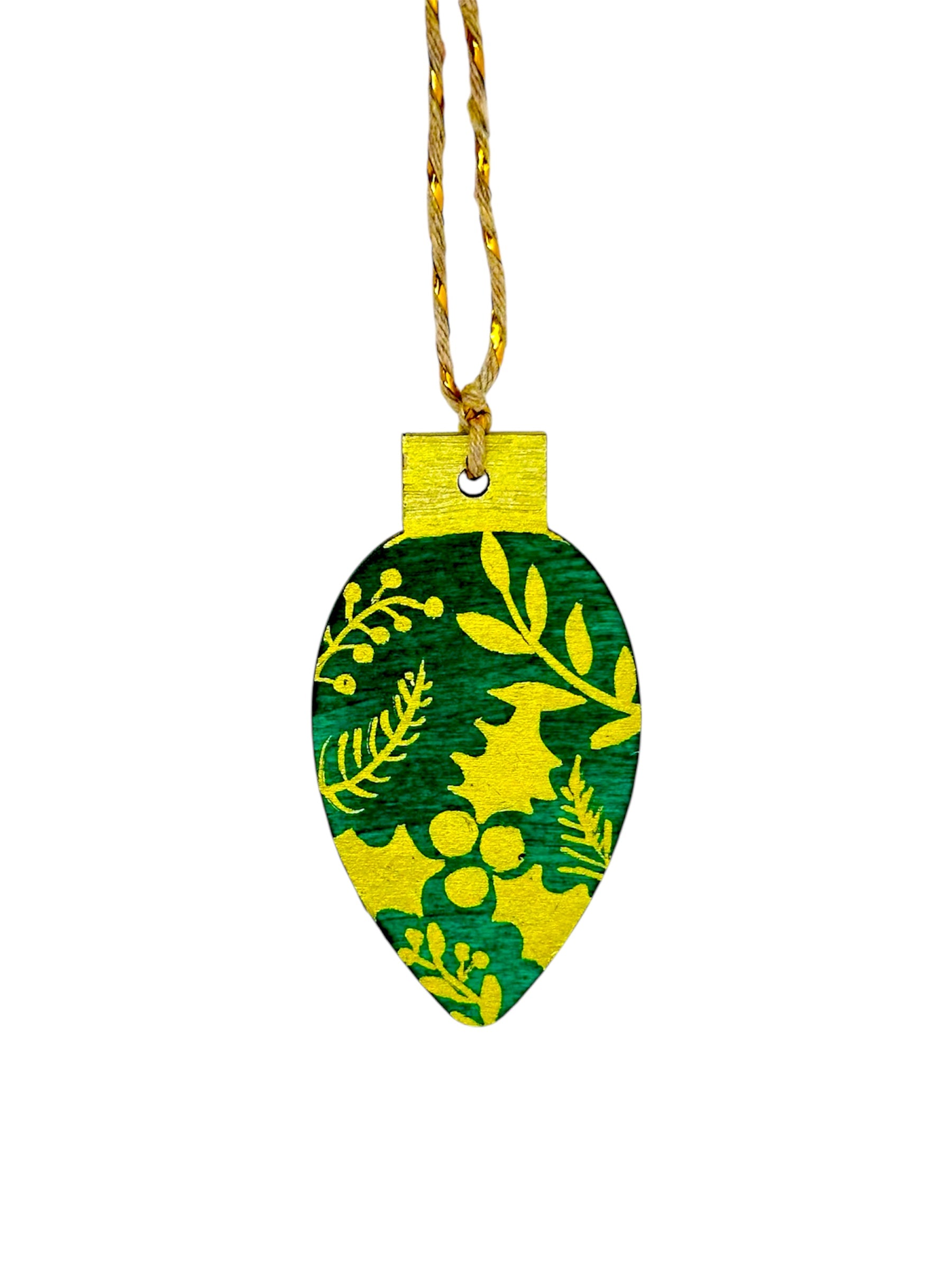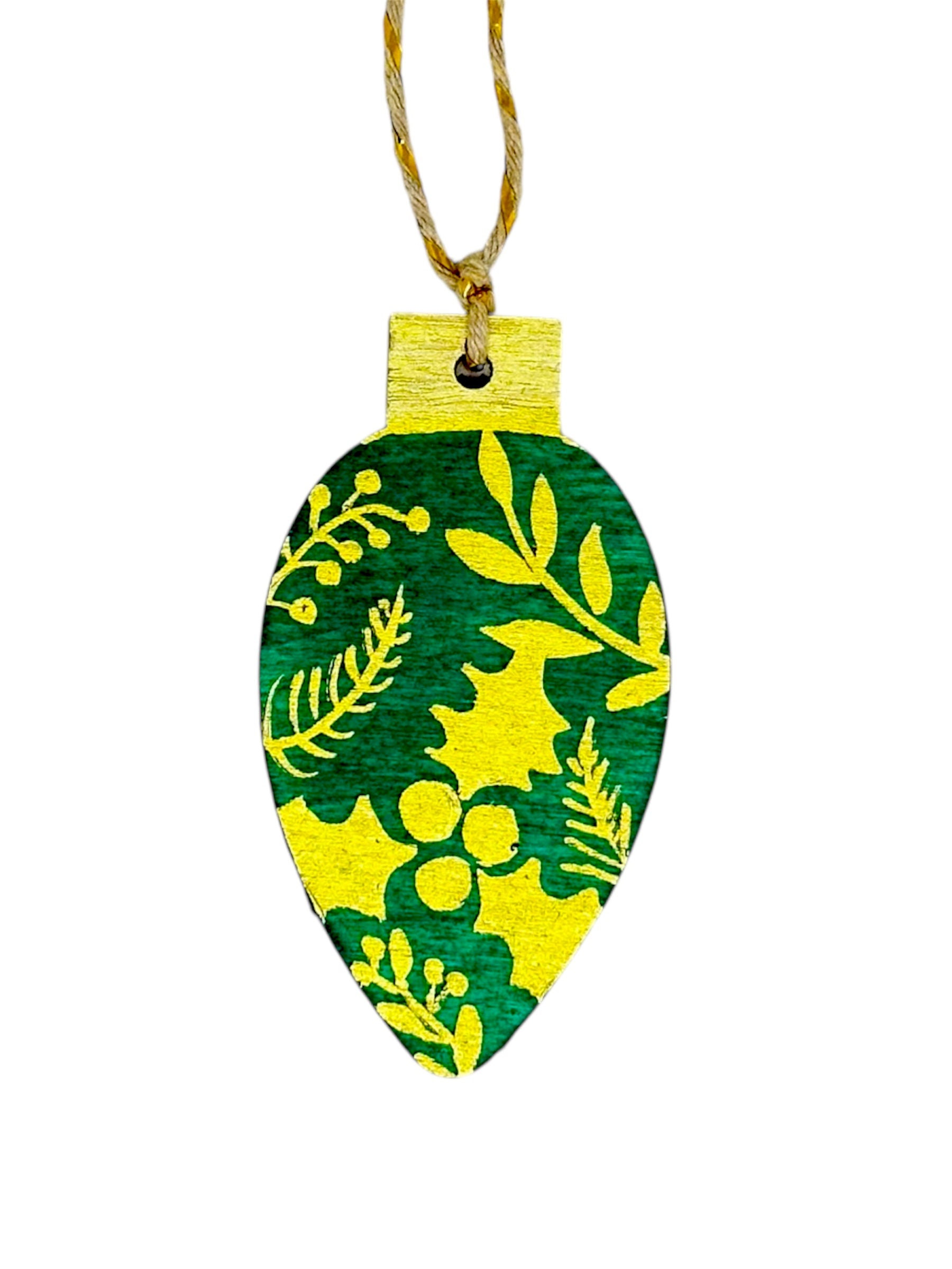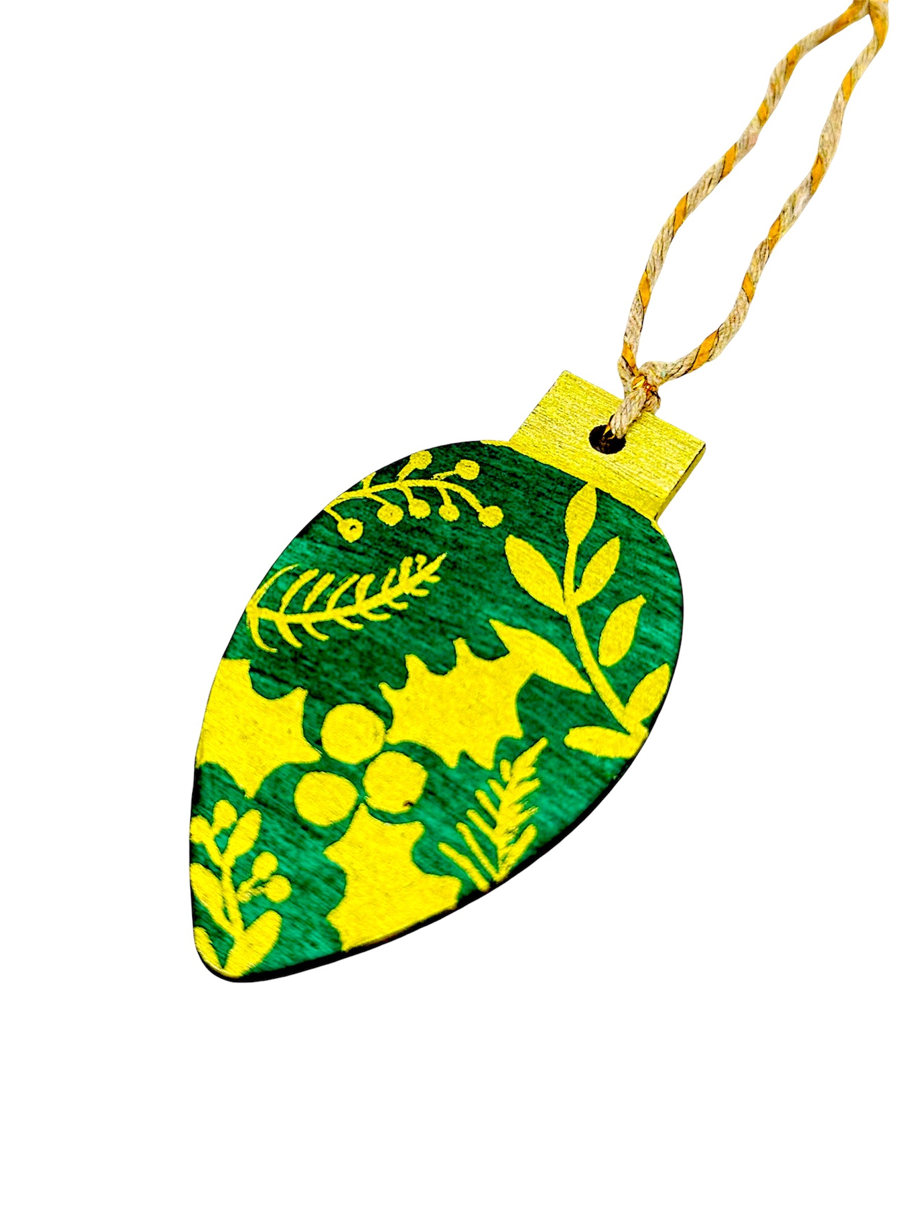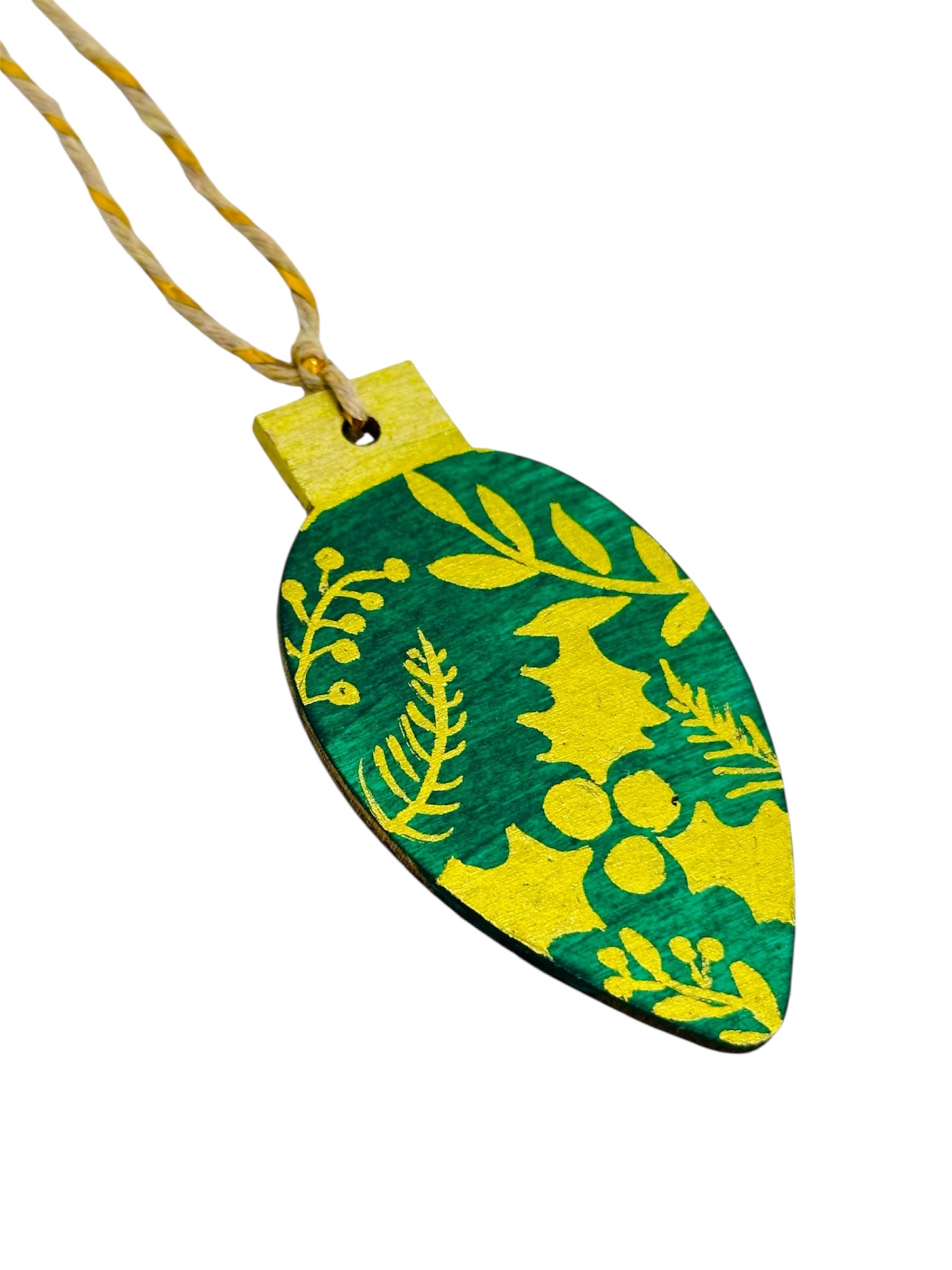 Enhance your holiday decor with our hand painted green and gold Christmas tree decoration.