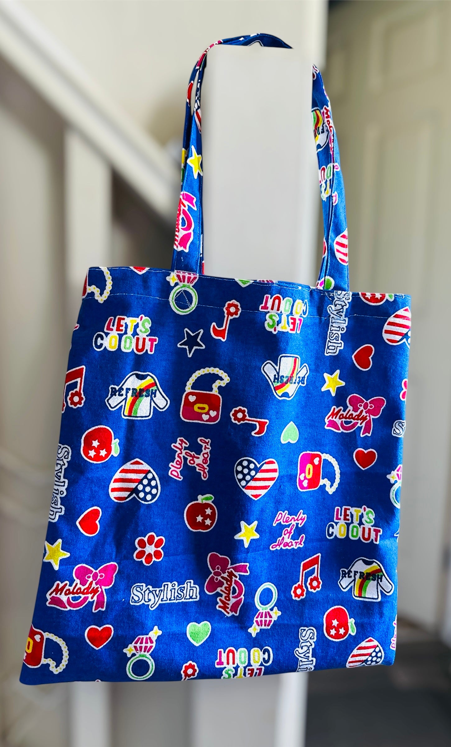 Lovingly handmade with a colourful and fun design, this tote/shopping bag is both stylish and functional.