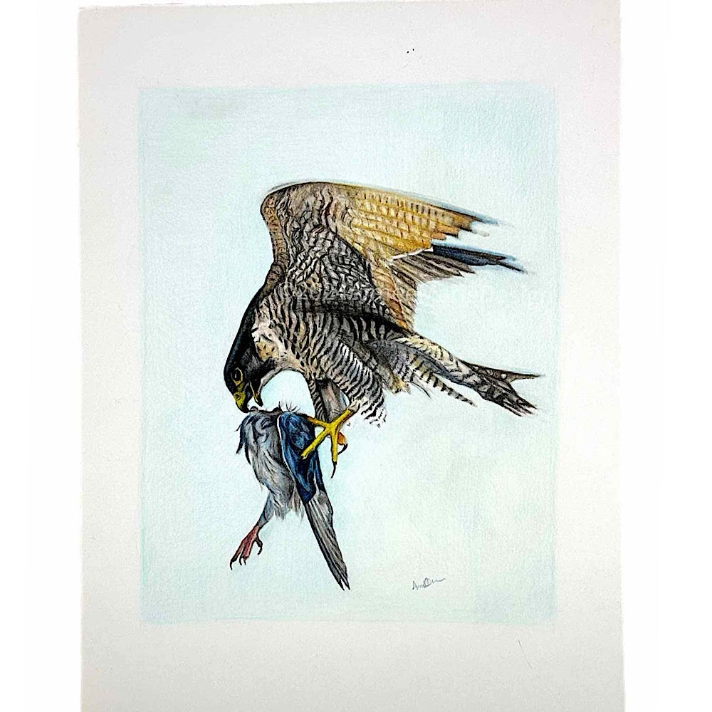 Witness the raw power and beauty of nature with this original Peregrine Falcon art.