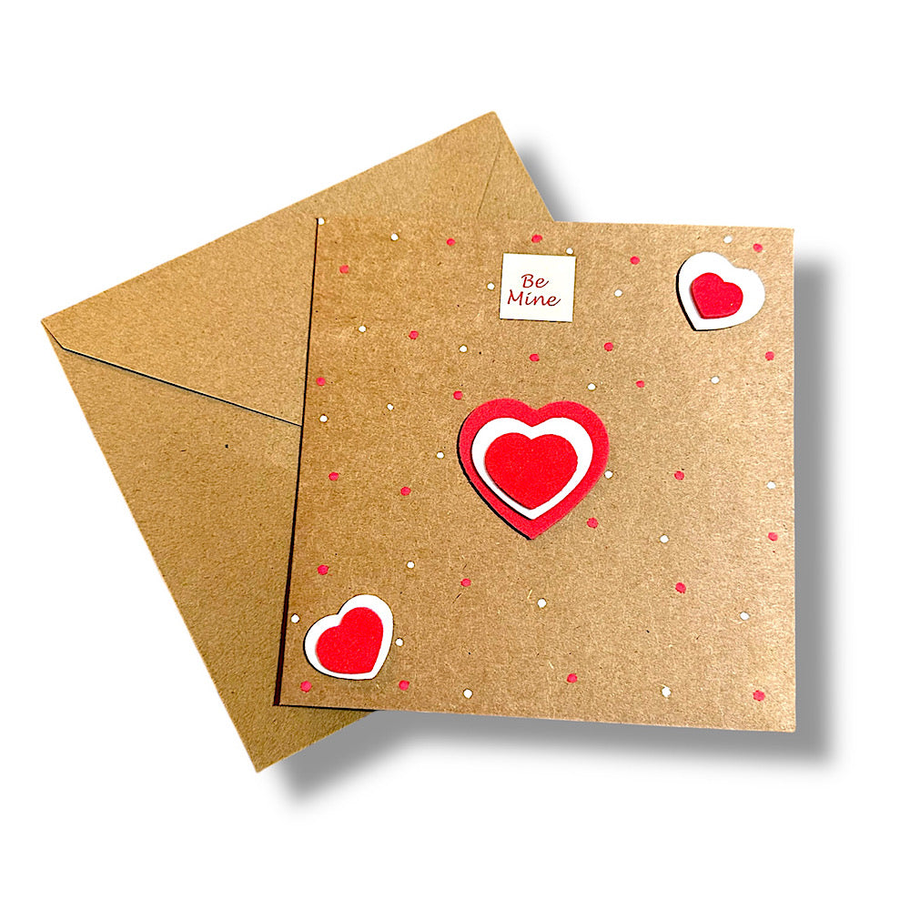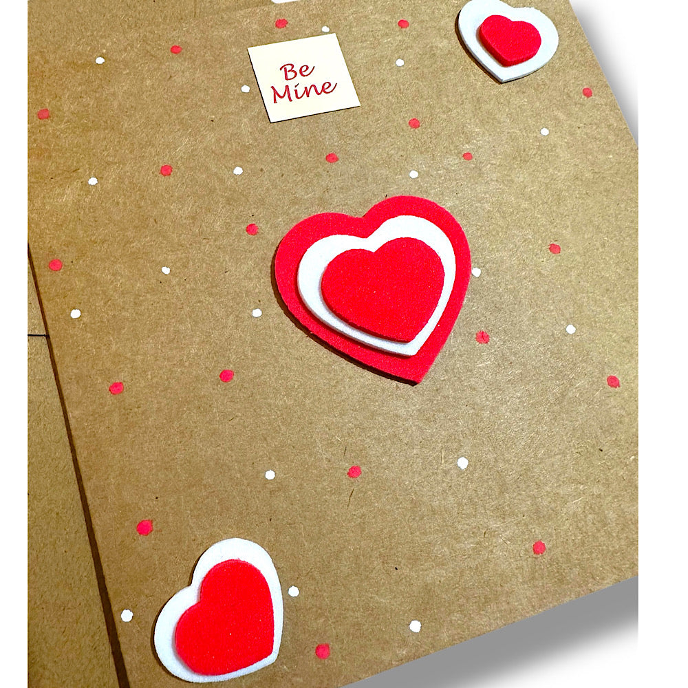 Express your love with this charming handmade Valentine's Day card. Featuring red and white foam hearts and a playful "Be mine" message, it's the perfect way to show your affection.