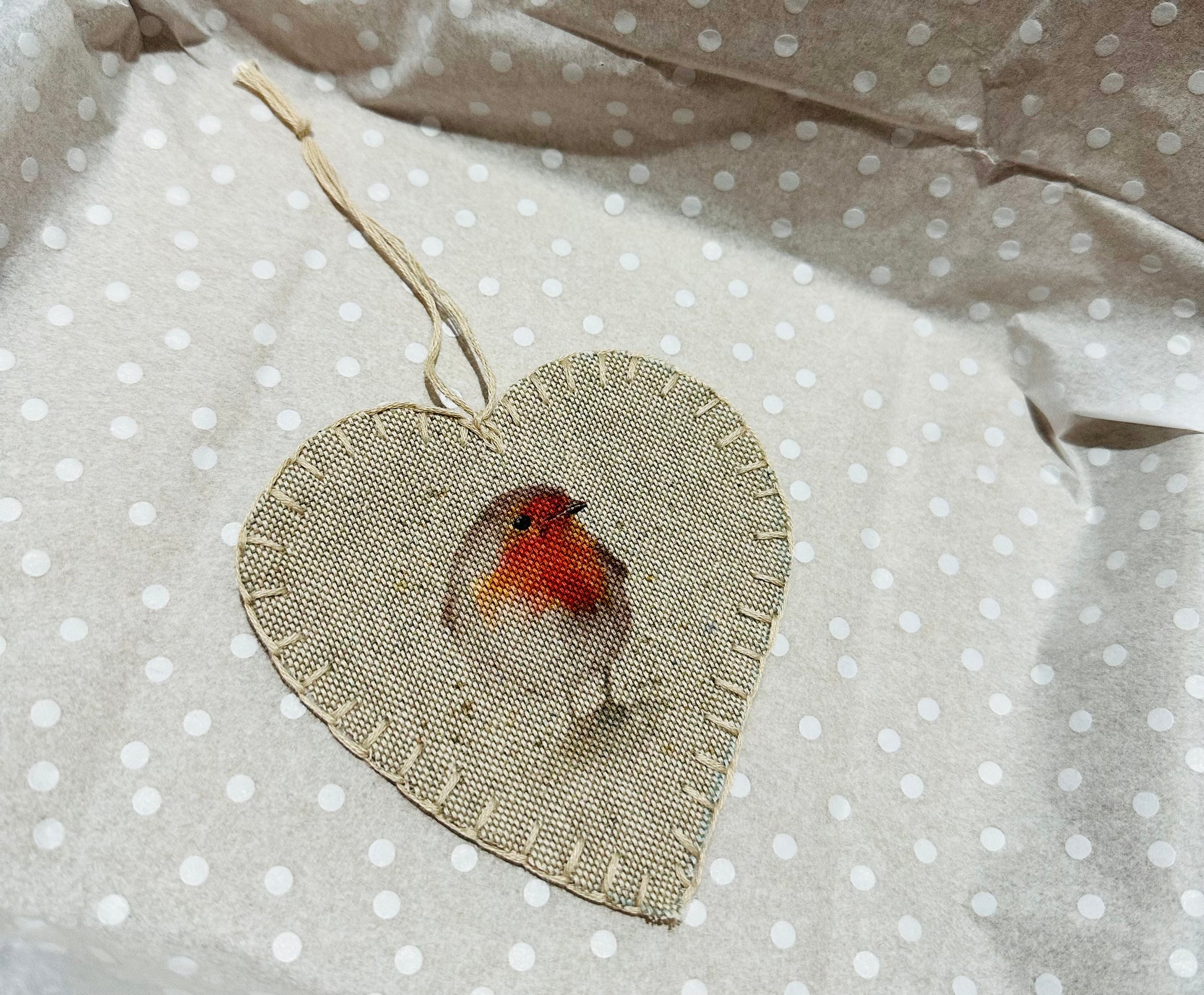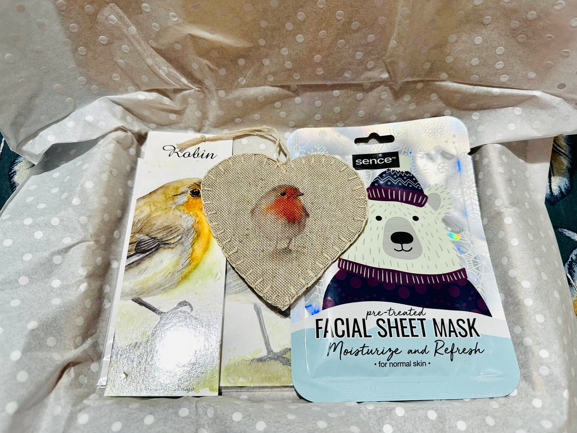 Adorned with a charming robin print and bookmark, this hamper also includes a hand-stitched robin heart and a luxurious face mask.