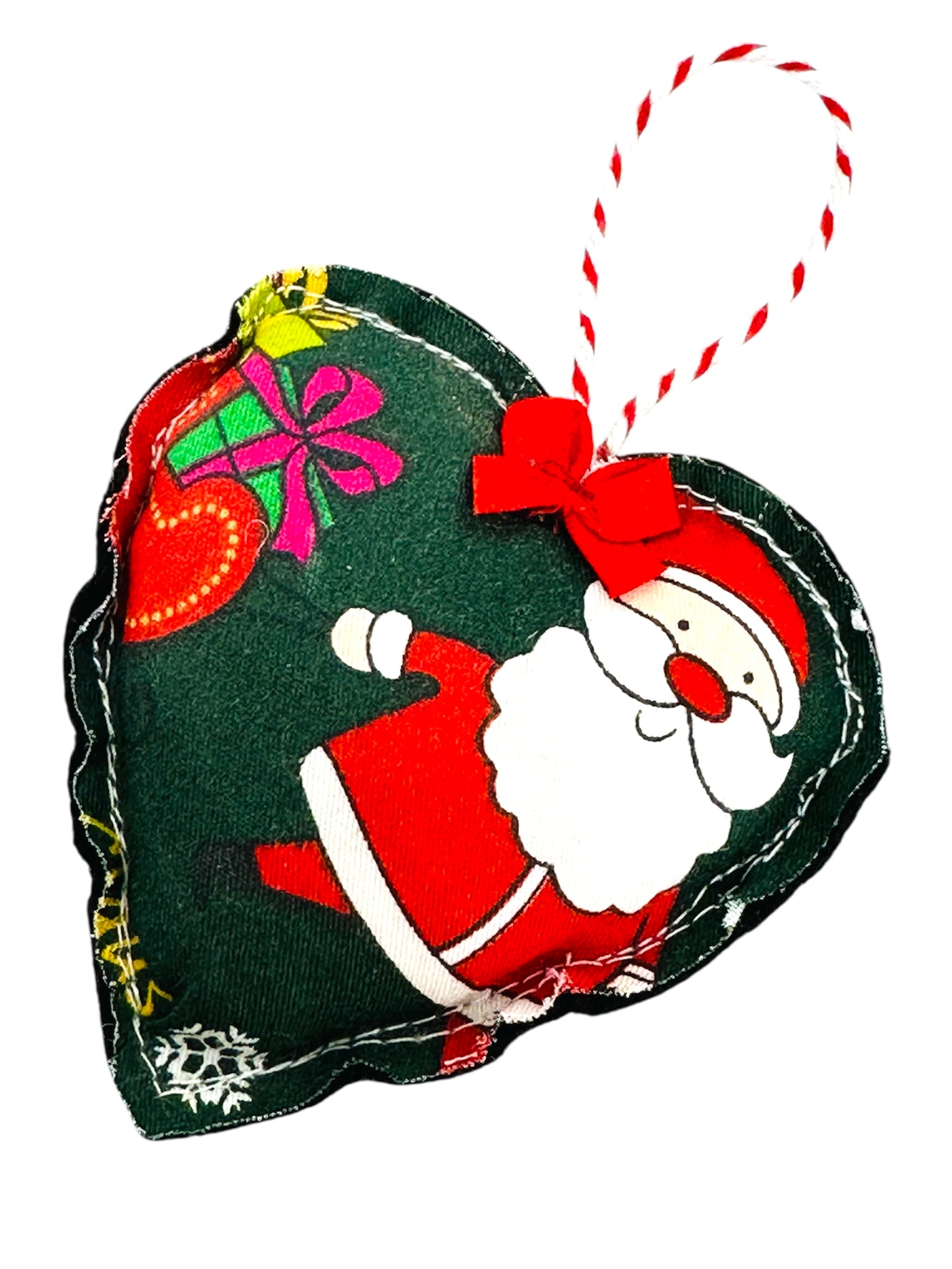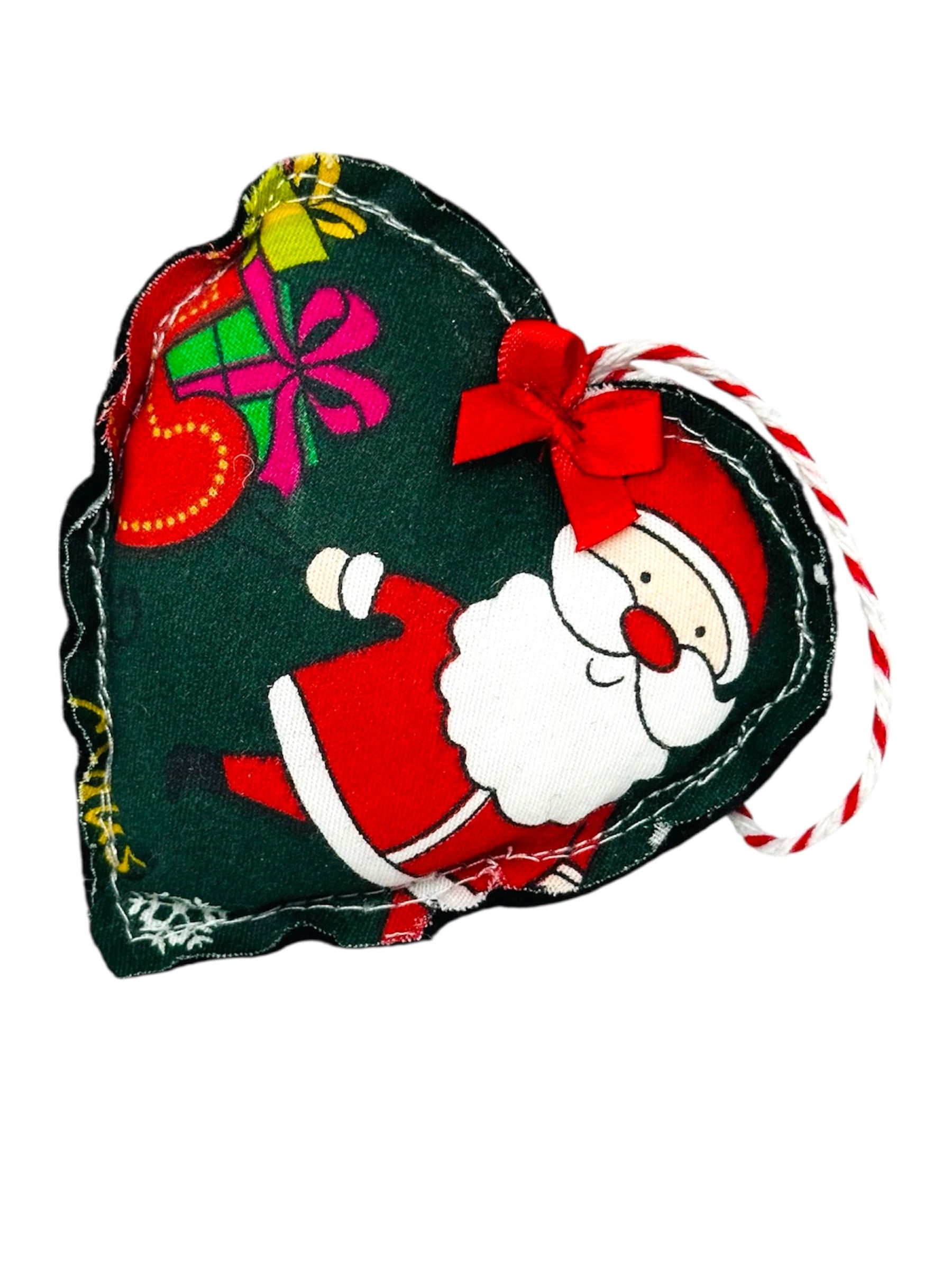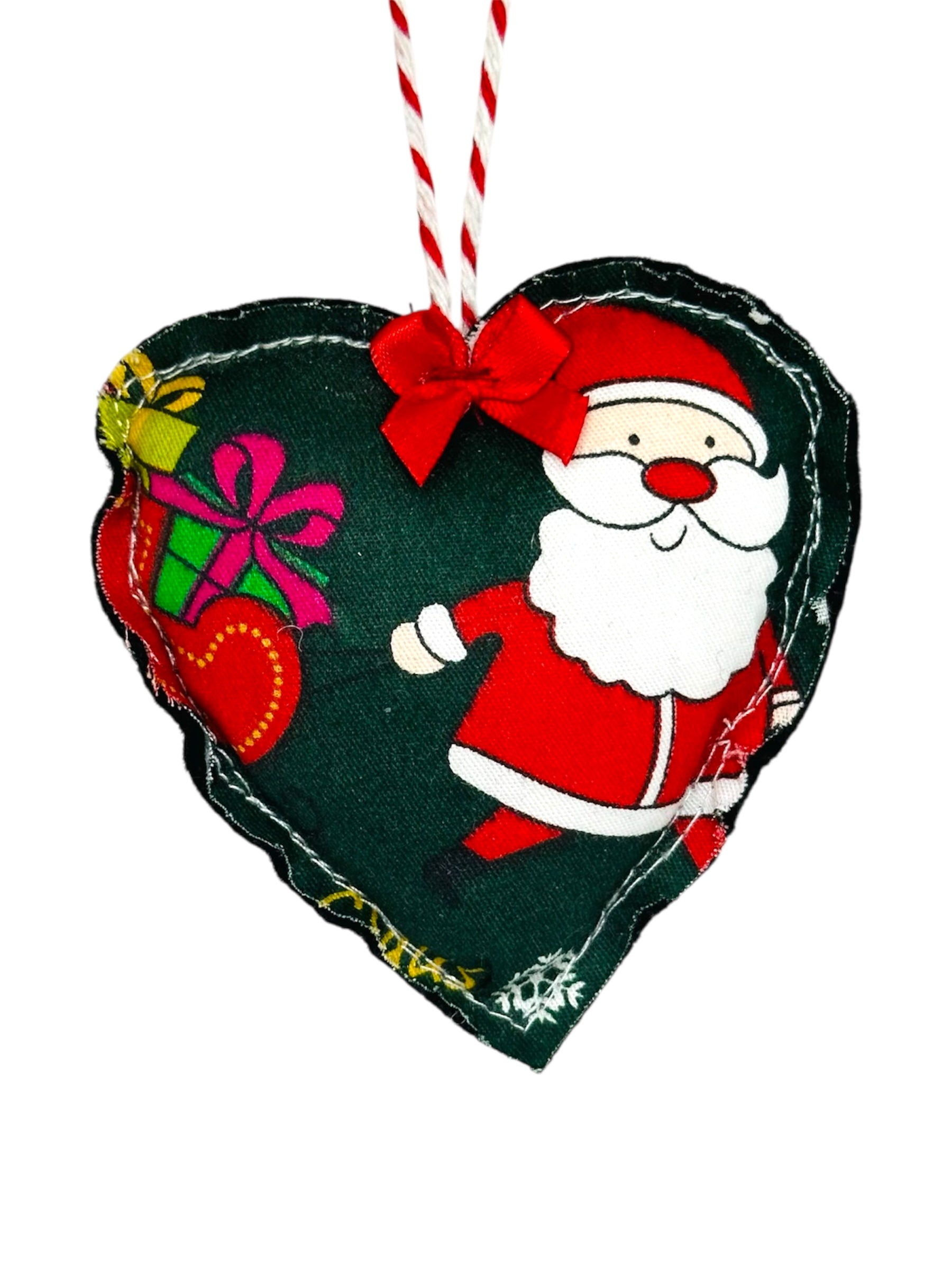 Featuring a festive Father Christmas design in green and red fabric, this hanging heart will bring a festive feel to any space.