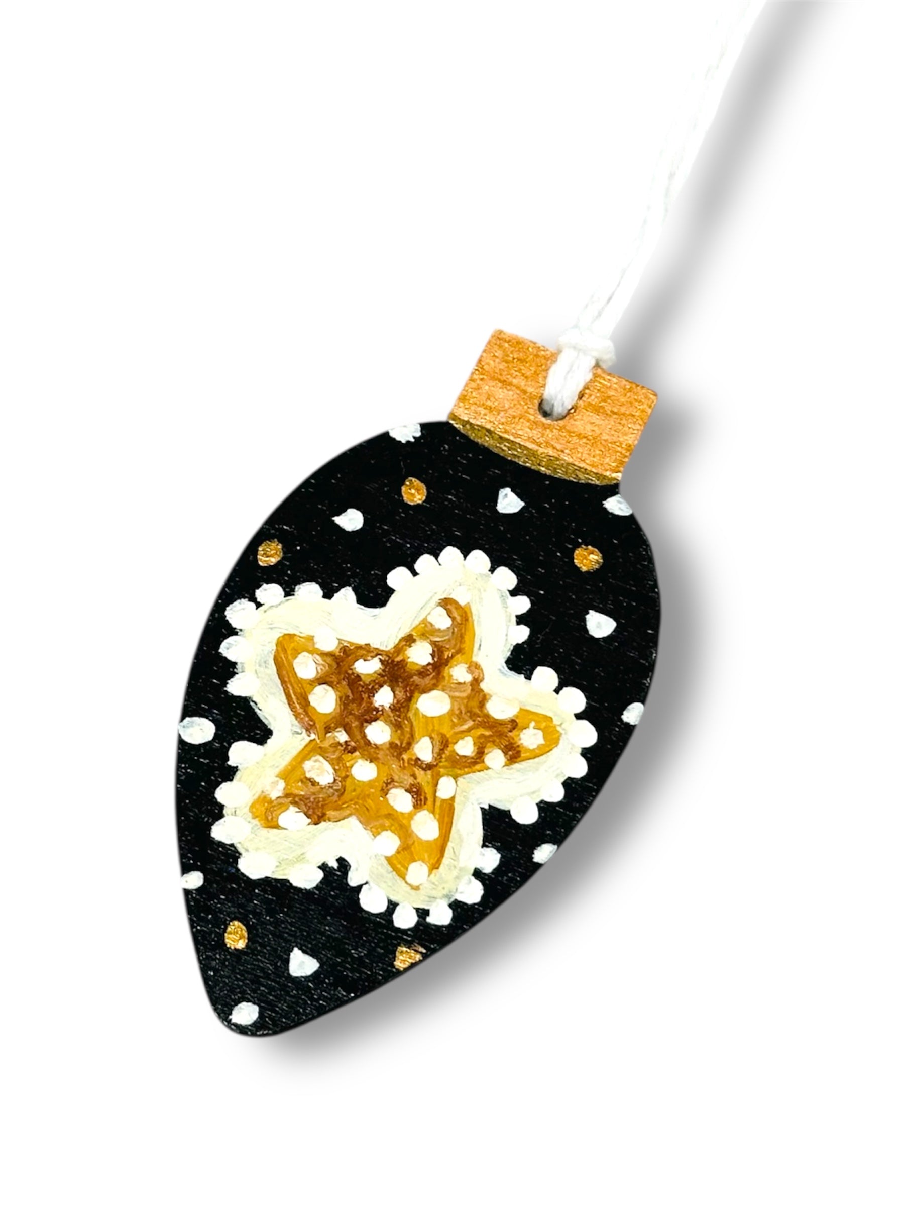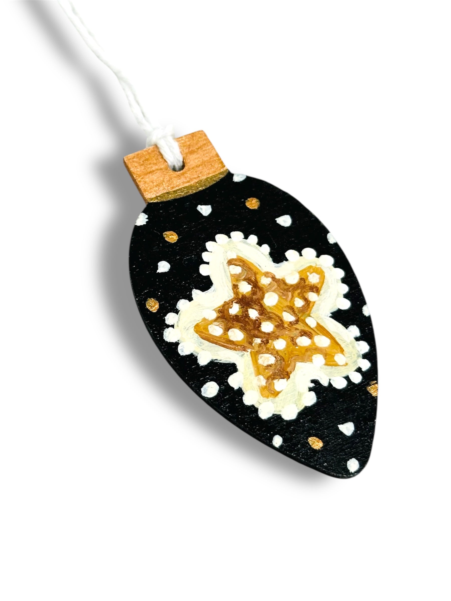 The wood design and acrylic paint give a unique touch while the dimensions of 7cm x 4cm make it the perfect addition to your tree.