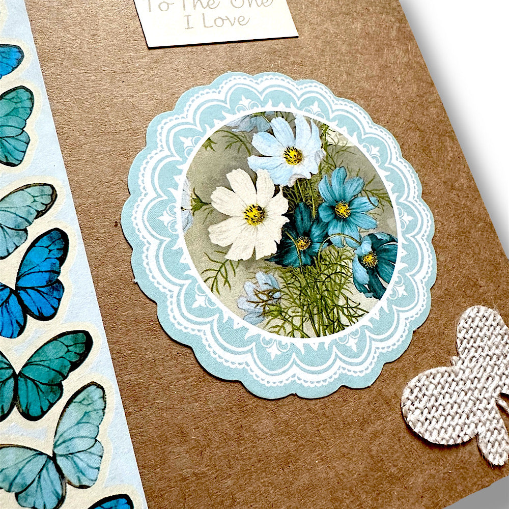 Express your love with our "To the one I love" handmade Valentine's Day card. Featuring a beautiful blue butterfly and flower theme, this natural card is handcrafted with love and care.