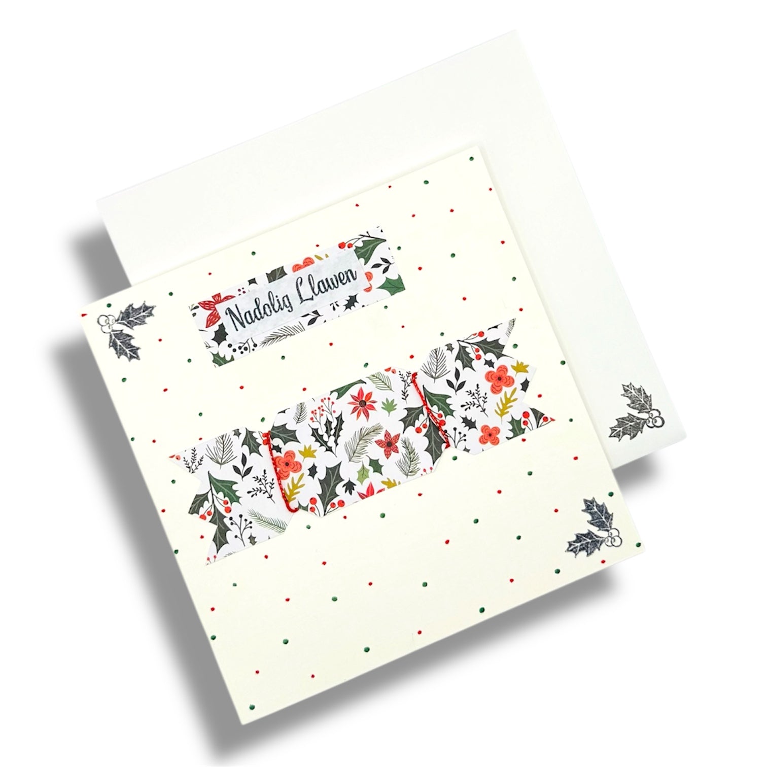 Perfect for spreading holiday cheer, this pack of 4 handmade Welsh Christmas cards features the phrase "Nadolig Llawen" (merry Christmas in Welsh).