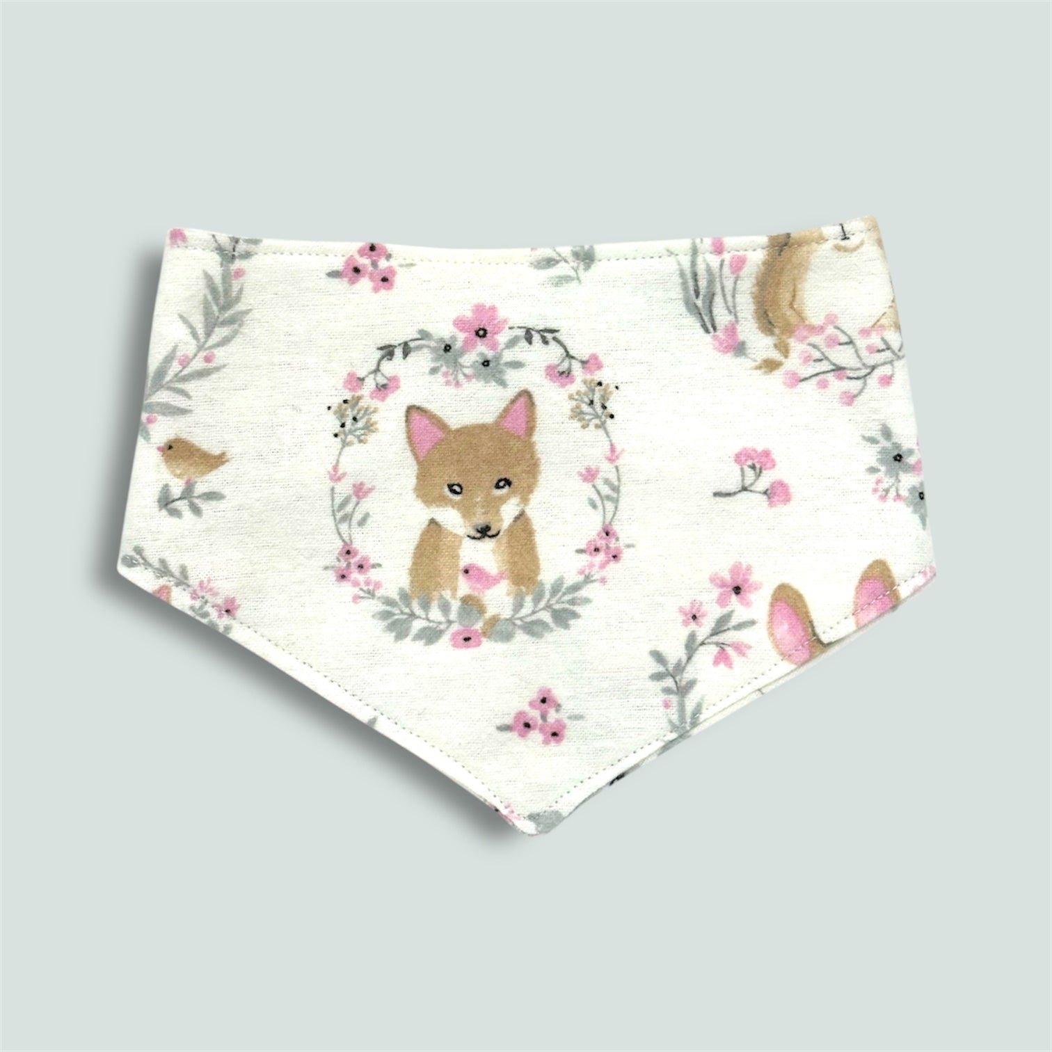 Featuring adorable pink and cream woodland animals, this soft brushed cotton bib is perfect for mealtime messes.